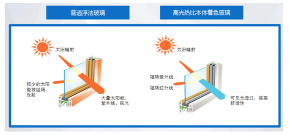 為進一步發(fā)揮本產(chǎn)品與現(xiàn)有節(jié)能玻璃的節(jié)能特性,以高光熱比本體著色玻璃為基片進行玻璃加工,可以充分滿足不同地域不同節(jié)能需求。