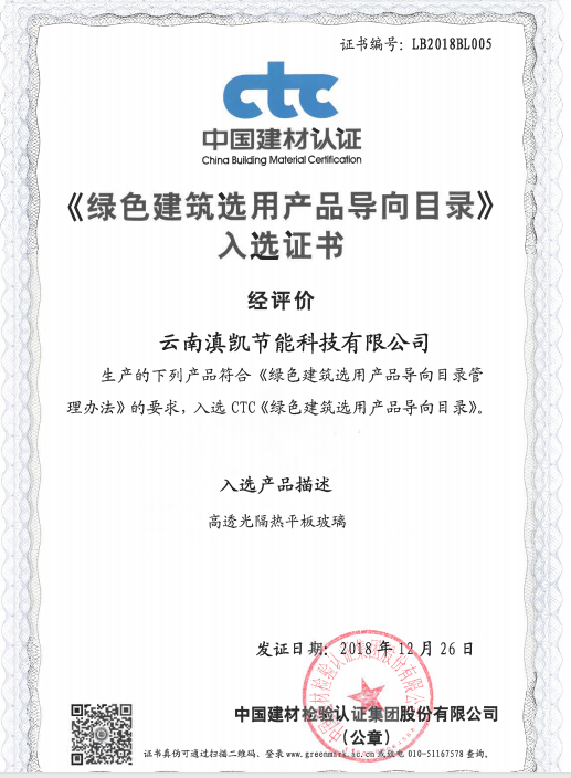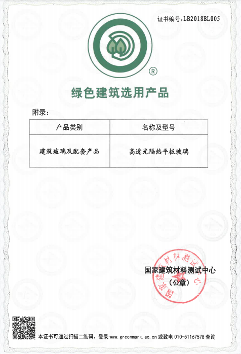 近日,公司“高透光隔熱平板玻璃”通過國家建筑材料測試中心認證,準許使用綠色建筑選用產品標志,并成功入選CTC《綠色建筑選用產品導向目錄》。