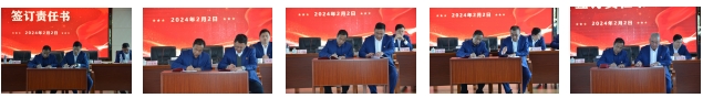 黨總支書記何興海同志與總經理儲寶權同志簽訂《2024年黨風廉政建設責任書》,總經理儲寶權同志分別與副總經理李凌同志、副總經理李玉仁同志、副總經理胡贏光同志、浮法車間主任楊春育同志簽訂《2024年經營目標責任書》。