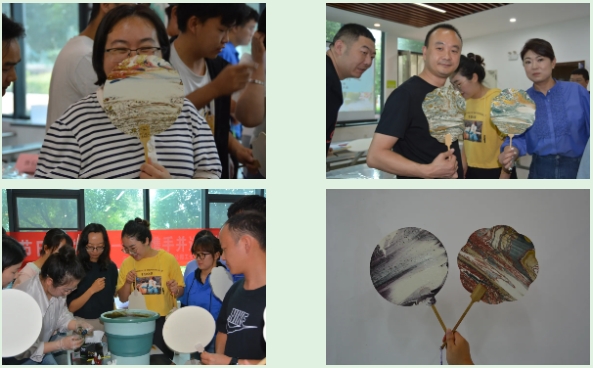 在我國古代,特別是宮廷貴族文化中,【端午贈扇】是擁有一千多年歷史的儒家文化傳統。活動現場,大家以漆為筆,以水為墨,將扇面繪成一幅幅具有個性的漆扇。每一個人都對自己的作品愛不釋手,大家互相傳授漂漆經驗,現場時而驚呼、時而歡笑,一片歡聲笑語。此刻正值夏日,辦公之余輕輕搖曳扇面,仿佛能聽到古人的低吟淺唱,感受到那份穿越時空的“端午”文化。