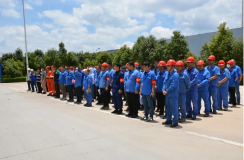 演練設(shè)置搶險(xiǎn)救援小組、醫(yī)療救護(hù)小組、物資供應(yīng)及聯(lián)絡(luò)小組、安全警戒及人員疏散小組4個(gè)工作小組,出動(dòng)消防應(yīng)急救援車(chē)輛3輛,共70余人參加演練。演練模擬了6月21日浮法車(chē)間窯爐塌陷,熔融玻璃液外泄事故。事故發(fā)生后,值班員工迅速撤離現(xiàn)場(chǎng)并向值班班長(zhǎng)報(bào)告,逐層上報(bào)批示后,立即啟動(dòng)“綜合應(yīng)急救援預(yù)案”,相關(guān)人員迅速做出應(yīng)急準(zhǔn)備和響應(yīng),有序、有效地開(kāi)展了應(yīng)急救援工作,保護(hù)了人員的生命安全,減少財(cái)產(chǎn)損失和對(duì)環(huán)境的不利影響。