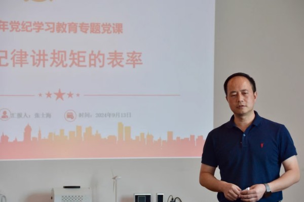 9月13日,集團公司財務總監張士海到滇凱講授“做守紀律講規矩的表率”黨紀學習教育主題黨課。滇凱公司、同振公司黨員、領導干部共40余人參加本次學習。